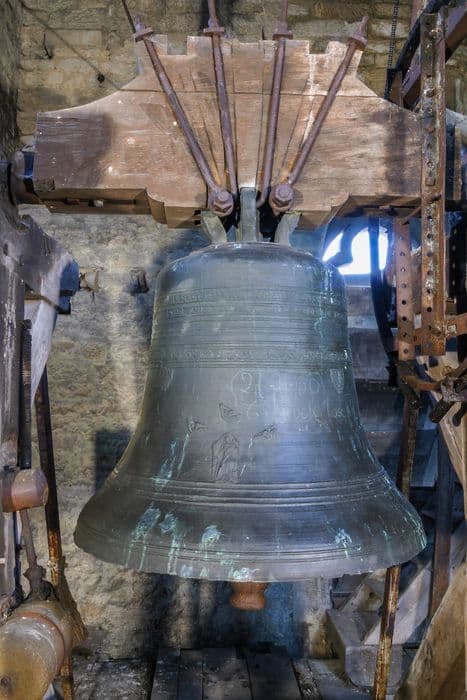 Cloches en bronze dont les battants sont en fer forgé. Les jougs en bois sont d'origine.