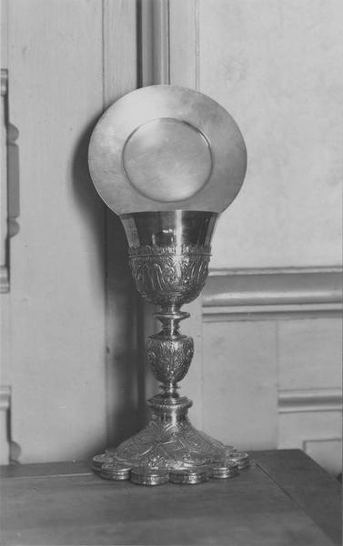 Il semble bien que ce calice du 17e siècle, a eu sa coupe et sa base décorée à nouveau au 19e siècle.