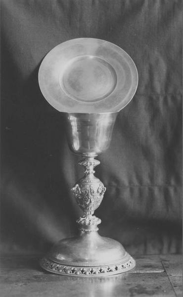 Inscription : MI GVIHAR (sous la base). Poinçon : P S, dans un carré surmonté d'une fleur de lys (sous la base). Poinçon (chiffre) : 74 (sur le rebord de la base).