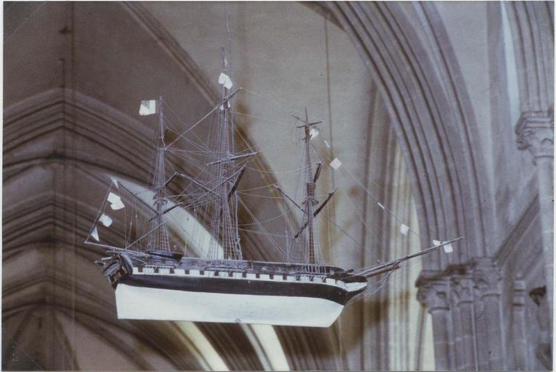 Maquette d'un trois mâts carré de guerre, frégate, la Reine des cieux. Coque : sous ligne de flottaison, en blanc ; au-dessus, en noir ; bande blanche au niveau de la batterie inférieure ; coque faite sur membrures. Armement : deux rangées de sabords de chaque côté et deux sabords de retraite à la poupe (au total soixante canons). Pont : une grande embarcation de chaque côté du gaillard arrière, à l'extérieur. Mâture : trois vergues et une hune à chaque mât ; mâts bruns ; mât de misaine cassé au sommet ; pavillon au mât d'artimon (tricolore) ; grand pavois en mauvais état.