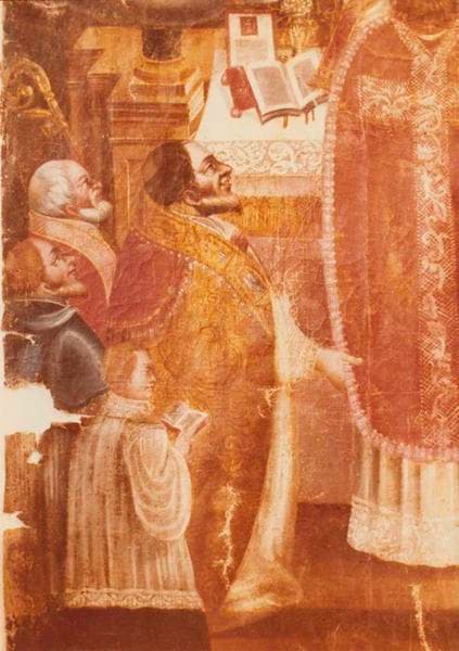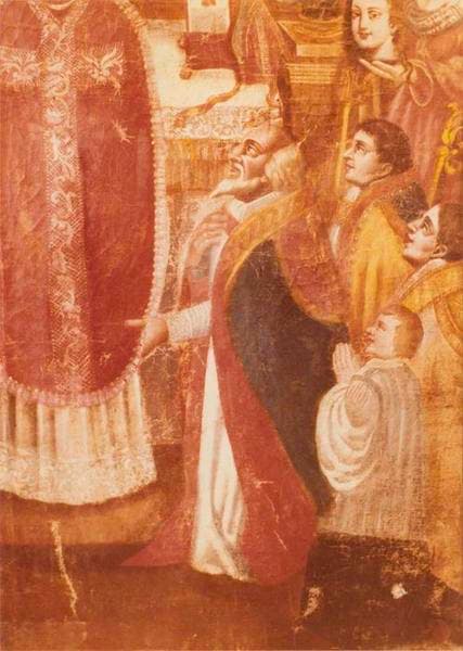 autel, retable, 2 statues : saint Nicolas, saint Jacques, tableau : la Messe de saint Grégoire (autel secondaire)