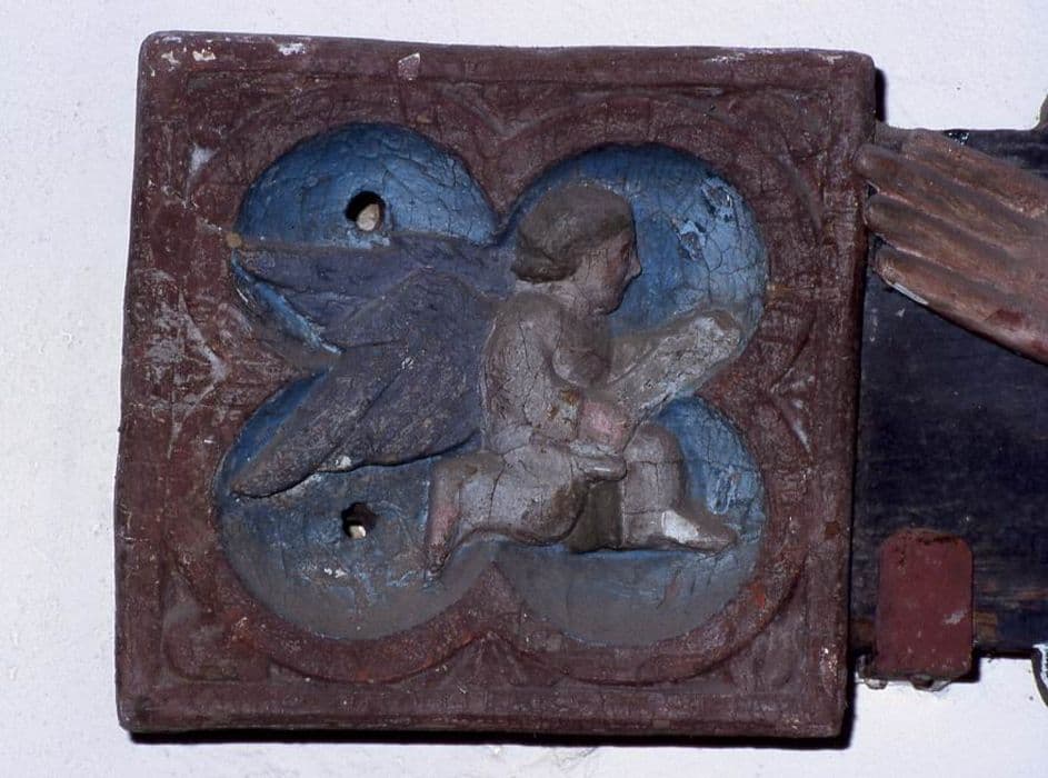 Les symboles des évangélistes sont figurés à chaque extrémité de la croix.