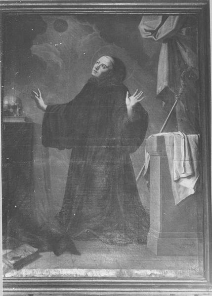 Lhermitais, peintre vannetais du 18e siècle. Provient d'un couvent des camaldules de Roga à Saint-Congard, ruiné à la fin du 18e siècle. Sujet anciennement identifié comme saint Dominique.