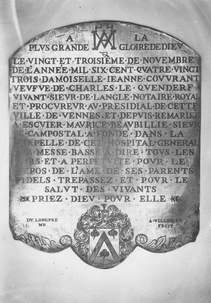 plaque commémorative de fondation de messe