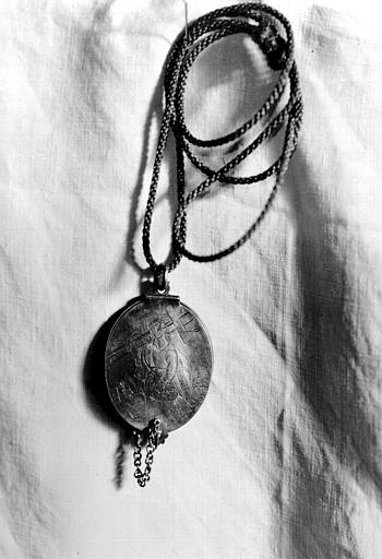 Un cordon de soie dorée permet de porter cette custode au cou.