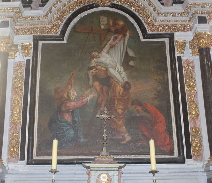 POP | Plateforme ouverte du patrimoineautel, retable, 3 statues : saint Jean-Baptiste, saint François-d'Assise, sainte Catherine de Sienne, tableau : Descente de Croix (autel secondaire de saint Jean-Baptiste)