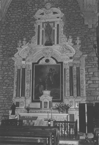 Vers 1680. Ce retable est attribué par Jacques Salbert, dans sa thèse sur les ateliers de retables lavallois à Olivier Martinet, fils de Jean Martinet, qui s'était établi à Vitré avant de retourner à Laval.