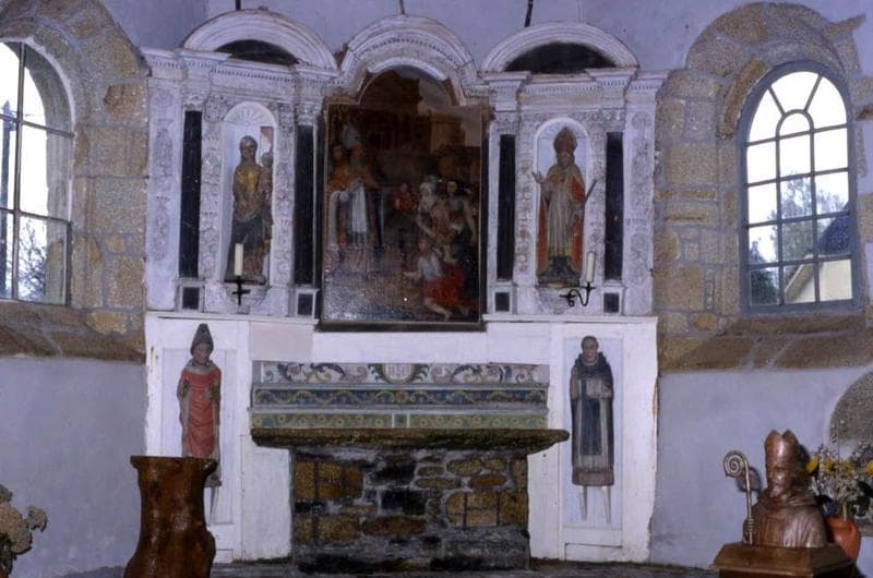 POP | Plateforme ouverte du patrimoineretable du choeur, deux statues : Saint Molvan et Notre-Dame de Bon Secours et tableau : Saint bénissant la foule