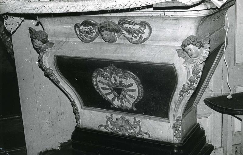 Autel orné au centre du Triangle trinitaire et sur les arêtes de têtes d'angelots.