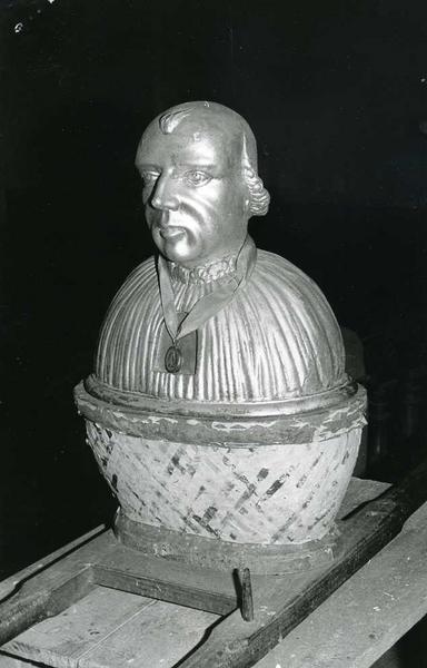 Buste de procession sur un support en bois faisant également office de reliquaire.