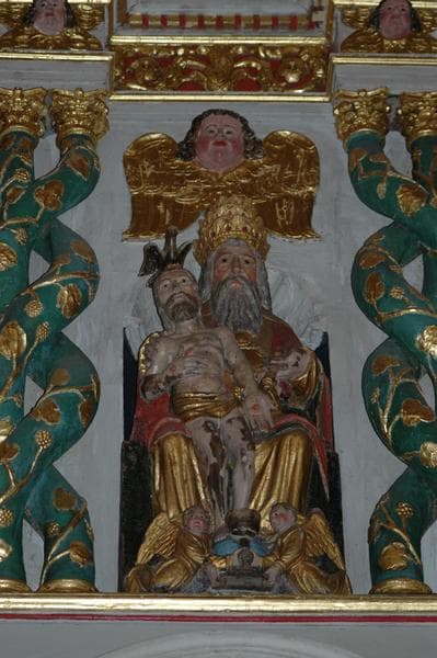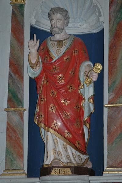 retable du maître-autel et trois statues : Trinité, Saint Pierre et Saint Paul