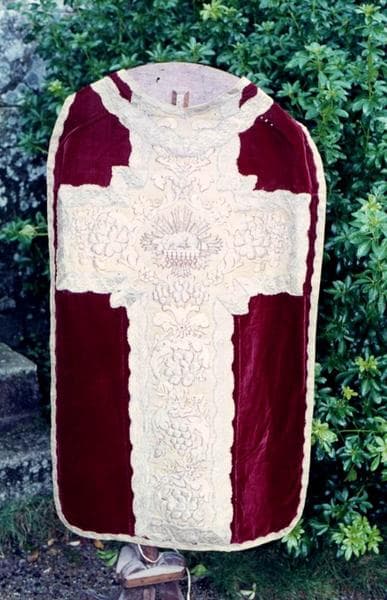 ornement liturgique catholique ; chasuble ; voile de calice ; bourse de corporal ; étole de clerc