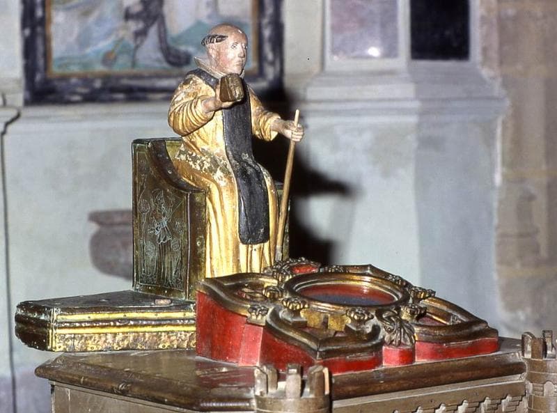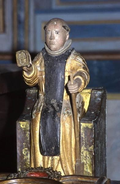 devant statuette de saint Fiacre
