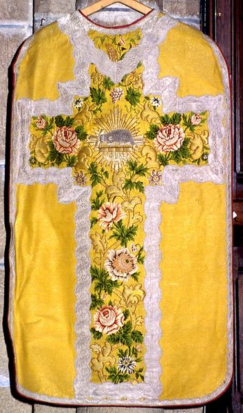 Agneau mystique couché sur la croix au centre de la chasuble.