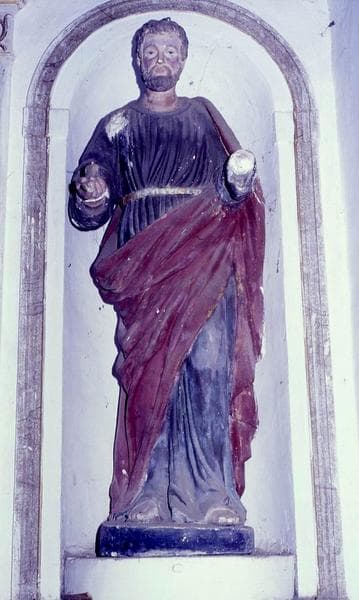 POP | Plateforme ouverte du patrimoineretable du transept sud, deux statues : Saint Pierre et Vierge à l'Enfant et tableau : Le Rosaire