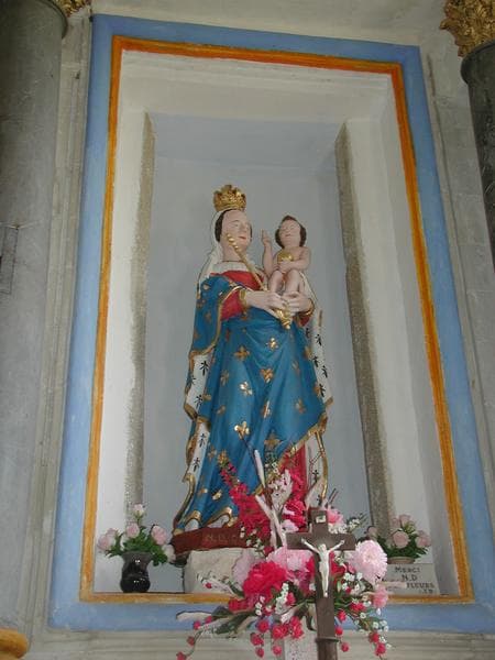 retable du maître-autel et trois statues : Saint Isidore, Saint évêque (Saint Gervais) et Notre-Dame des Fleurs