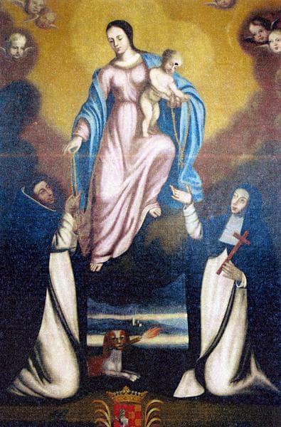 Apparition de la Vierge à saint Dominique ; remise : rosaire ; sainte Catherine de Sienne