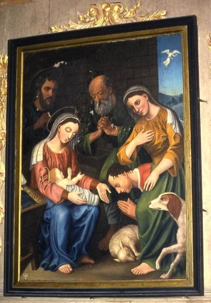 POP | Plateforme ouverte du patrimoineretable du maître-autel, deux statues : Saint Pierre et Vierge à l'Enfant et tableau : Adoration des bergers