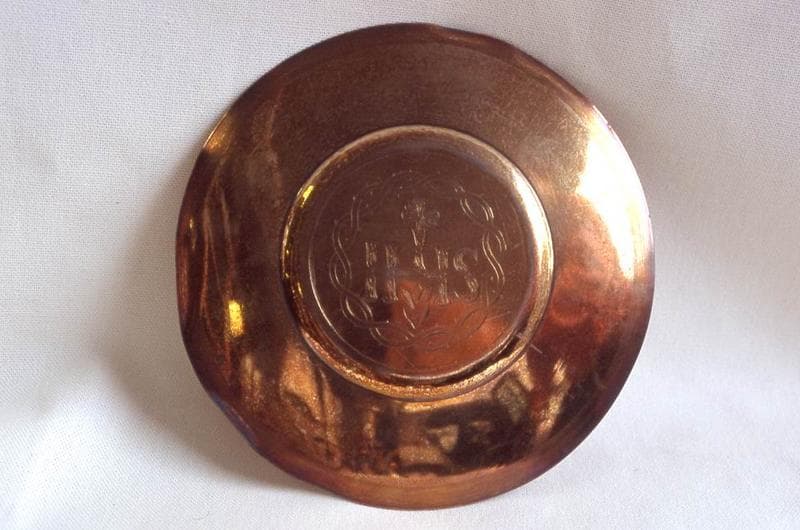 Sur deux des patènes, le centre est occupé par le monogramme du Christ encadré d'un coeur et d'une croix, le tout dans une couronne d'épines. Sur la troisième patène, un serpent s'enroule autour de la croix.