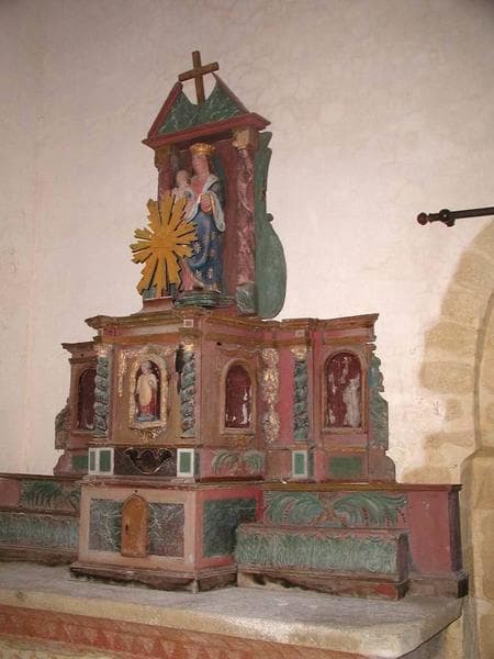 POP | Plateforme ouverte du patrimoinetabernacle et deux gradins de l'autel latéral nord avec statue : Vierge à l'Enfant et statue (statuette) : Saint abbé