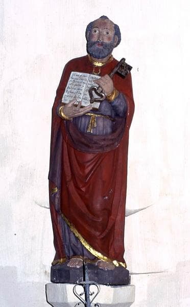 Saint Pierre tient une clé dans la main gauche et un livre dans la main droite.