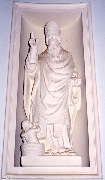 cinq statues du choeur : Saint Pierre, Saint Nicolas, Notre-Dame de Miséricorde, Saint Joseph et Saint Paul