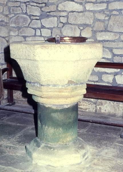 Cuve des fonts baptismaux sur pied.