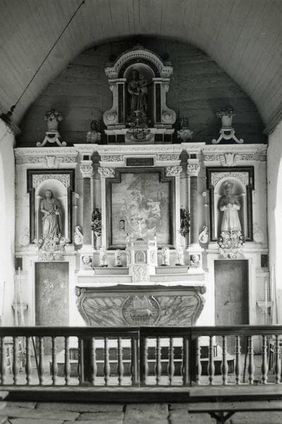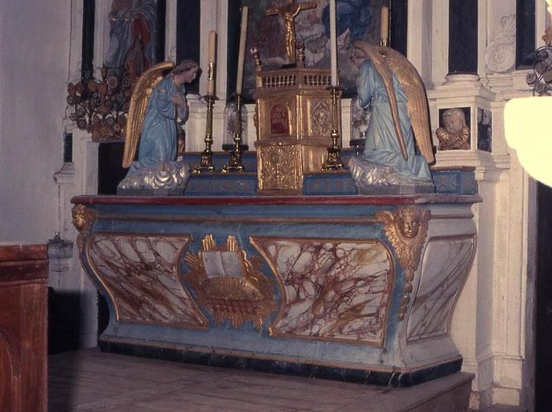 Autel galbé, surmonté de deux gradins d'autel (PM56005243), d'un tabernacle (PM56005242) et de deux anges adorateurs (PM56005244).