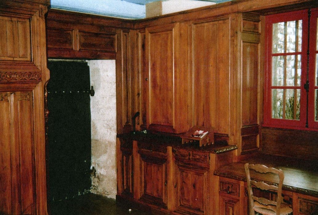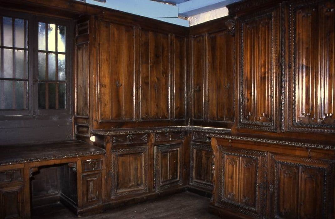 Le mobilier de la sacristie fait corps avec les lambris, sur les quatre murs.