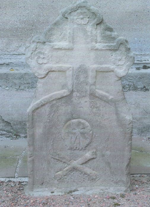 Pierre tombale de Peter Misler datée de 1775 replacée le long de l'église.