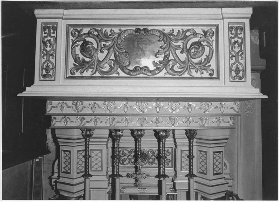 Autel réalisé en 1742, un an avant l'autel latéral nord comme l'indique le cartouche daté au sommet. La statue de la niche supérieure (saint Sébastien) est attribuée à Nicolas Greef-Greisch et date du 18e siècle alors que celles de saint Vincent de Paul et de saint François Xavier datent du 19e siècle.