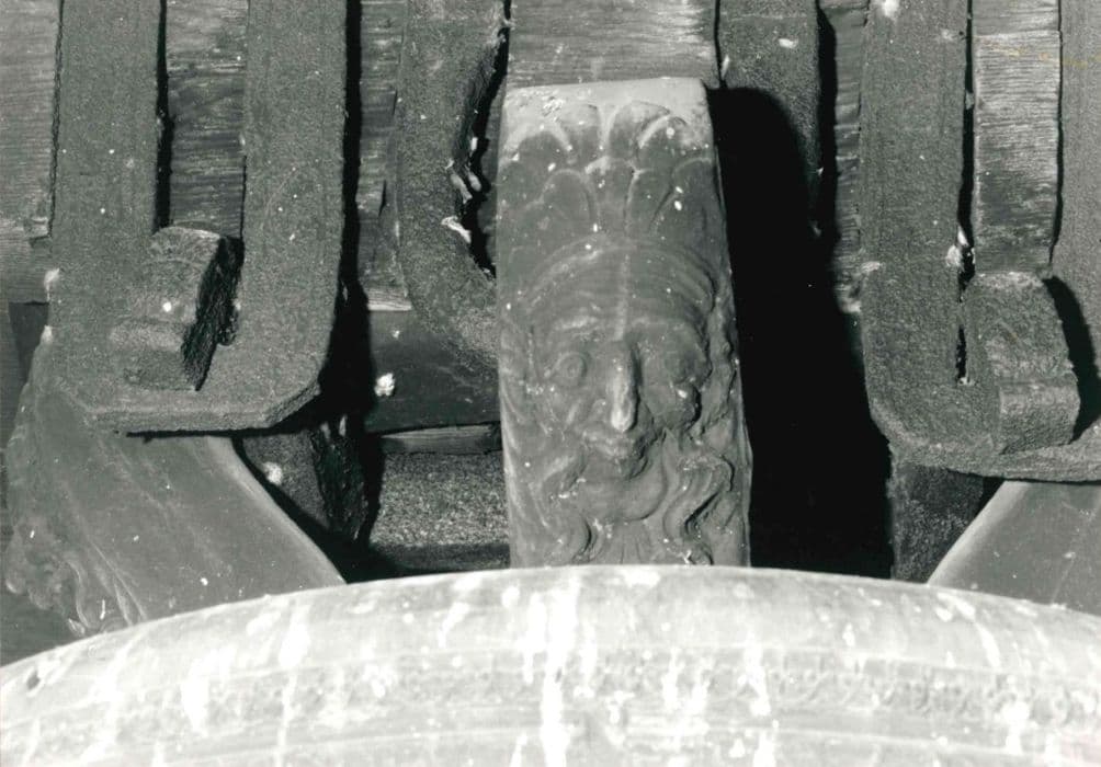 Les anses sont ornées de têtes humaines moustachues et barbues, coiffées d'une sorte de bonnet. En ce qui concerne le décor, la cloche et séparée en deux partie par une bande et deux paires de filets au milieu de la robe. Dans la partie haute se trouve du côté Est un groupe de huit blasons dont celui de la ville de Metz et du côté Ouest un groupe de cinq autres blasons dont les armes de France. Dans cette même moitié supérieure se voit encore différents décors religieux : Saint Michel terrassant le dragon, le Christ en croix entouré de la Vierge Marie et de saint Jean, les bustes de saint Pierre et saint Paul dans des médaillons, une représentation de la Vierge à l'Enfant, deux personnages nus (représenté deux fois) et enfin une représentation de trois personnages sous un arbre, scène qui pourrait être inspirée de l'histoire de Suzanne dans le Livre de Daniel de l'Ancien Testament. Dans la partie basse de la robe, du côté Est se trouve une grande croix sur un podium de quatre degrés. Cette croix est recouverte de rinceaux. De l'autre côté, une nouvelle croix sur un podium de trois degrés. Cette croix et les grés sur lesquels elle s'élève, sont faits par la juxtaposition de petits bas-reliefs rectangulaires dont certains se répètent plusieurs fois et d'autres sont posés verticalement. On peut y voir une crucifixion, le martyre de saint Etienne (patron de la cathédrale et de la ville Metz), la Vierge à l'Enfant, saint Michel terrassant un dragon et sainte Barbe (patronne du ys Messin), un évêque, saint Paul, un personnage déshabillé et saint Joseph. Le bas de la cloche est décoré par une série de filets.£