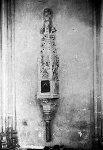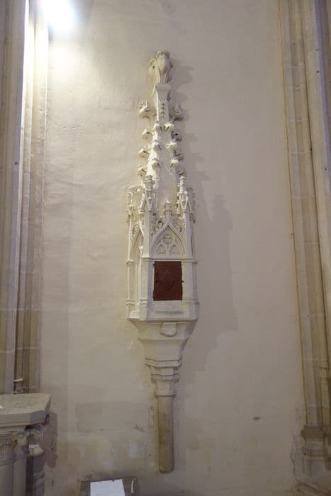 Tabernacle en pierre encastré dans le mur et reposant sur une colonne.