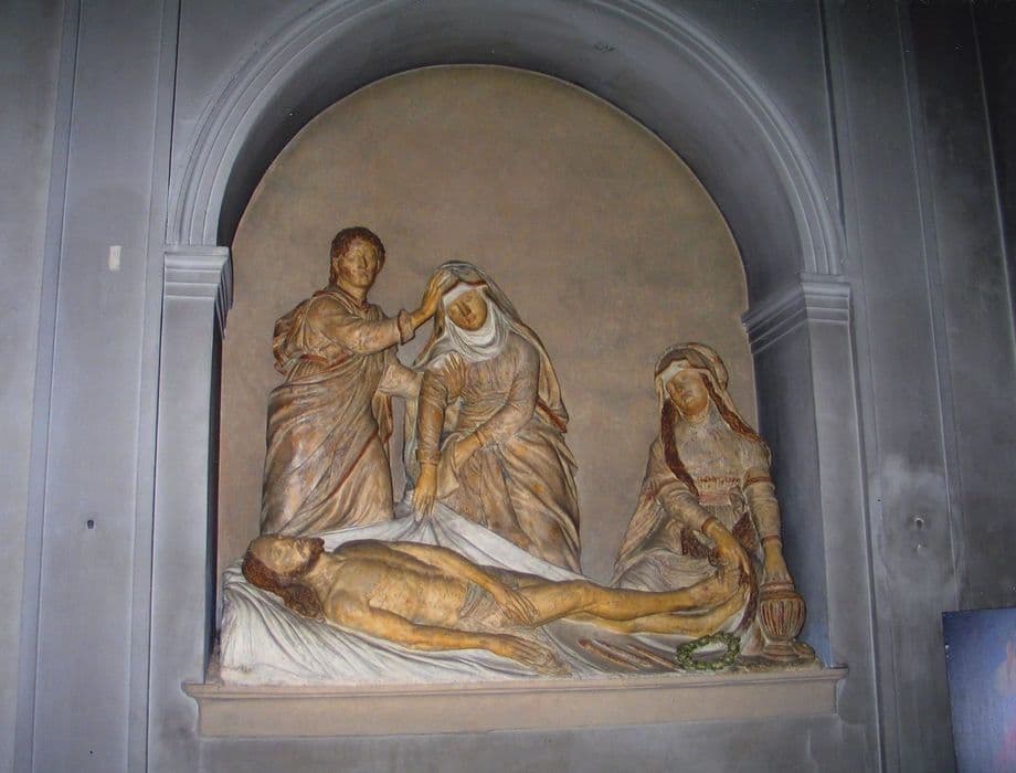 groupe sculpté : la Vierge de Pitié avec deux saintes femmes