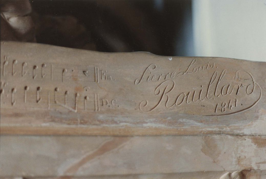 Le socle de ce groupe sculpté est décoré de bas-reliefs en terre cuite.