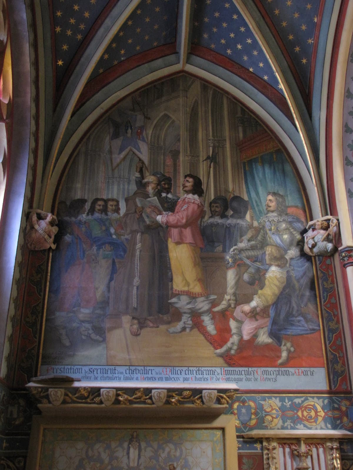 POP | Plateforme ouverte du patrimoinepeinture monumentale : Prestation de serment d'un chevalier de la milice chrétienne de l'Immaculée Conception de Marie