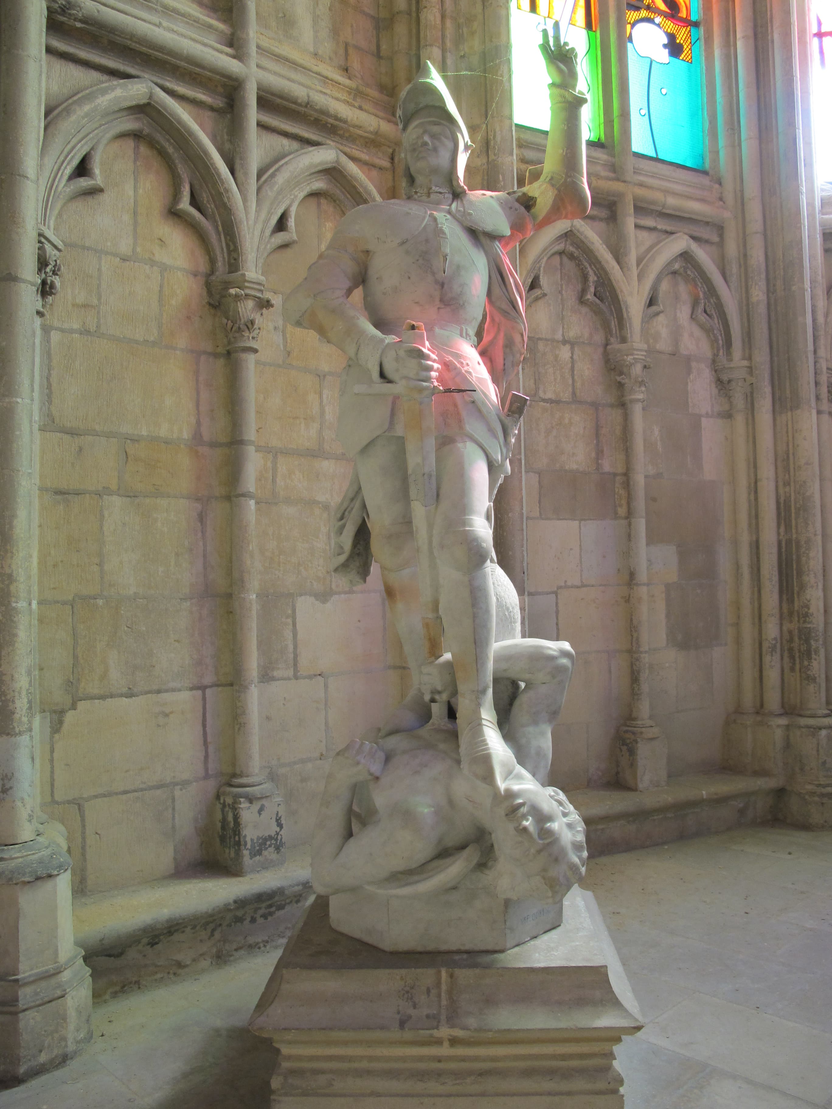 groupe sculpté : saint Michel terrassant le dragon