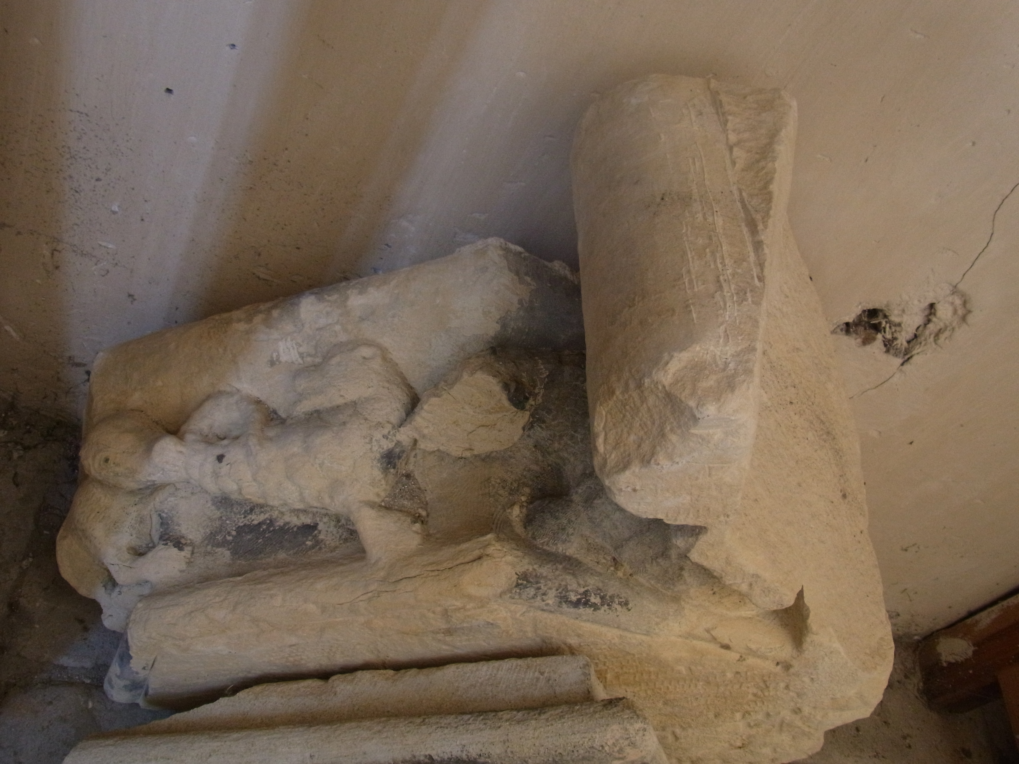 Élément démonté à l'occasion des restaurations de la Tour Bohier en 2009. Deux ours ou deux chiens sont représentés attaquant un mouton.