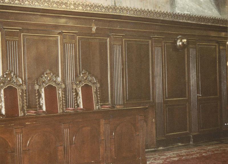 Panneaux rectangulaires simples séparés par des pilastres plats. Aucune décoration.