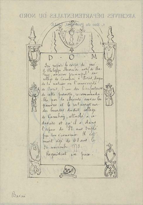de Philippe Mercier, ancien principal du collège de Cambrai à Paris, mort en 1778