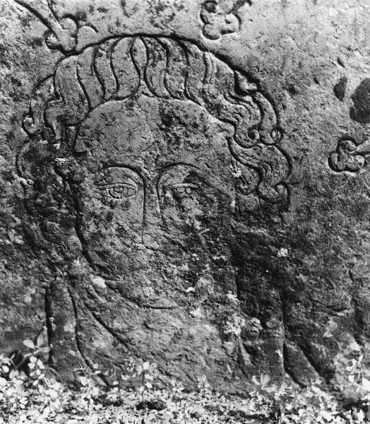 Pierre tumulaire représentant deux personnages.