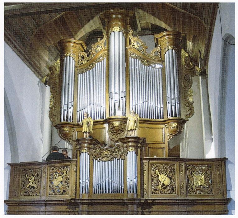 En 1849-1851, lors des transformations opérées par Charles Louis Neuville, le grand orgue et le positif sont séparés. Deux statuettes d'angelots sont commandées en 1858 pour agrémenter les tourelles du positif.