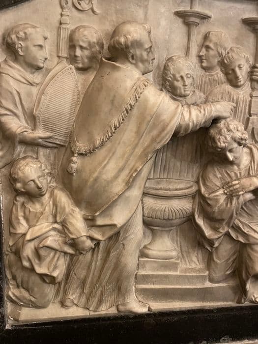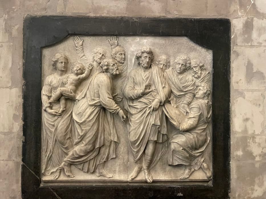 2 bas-reliefs : Baptême de saint Ambroise (le), élection de saint Ambroise (?)