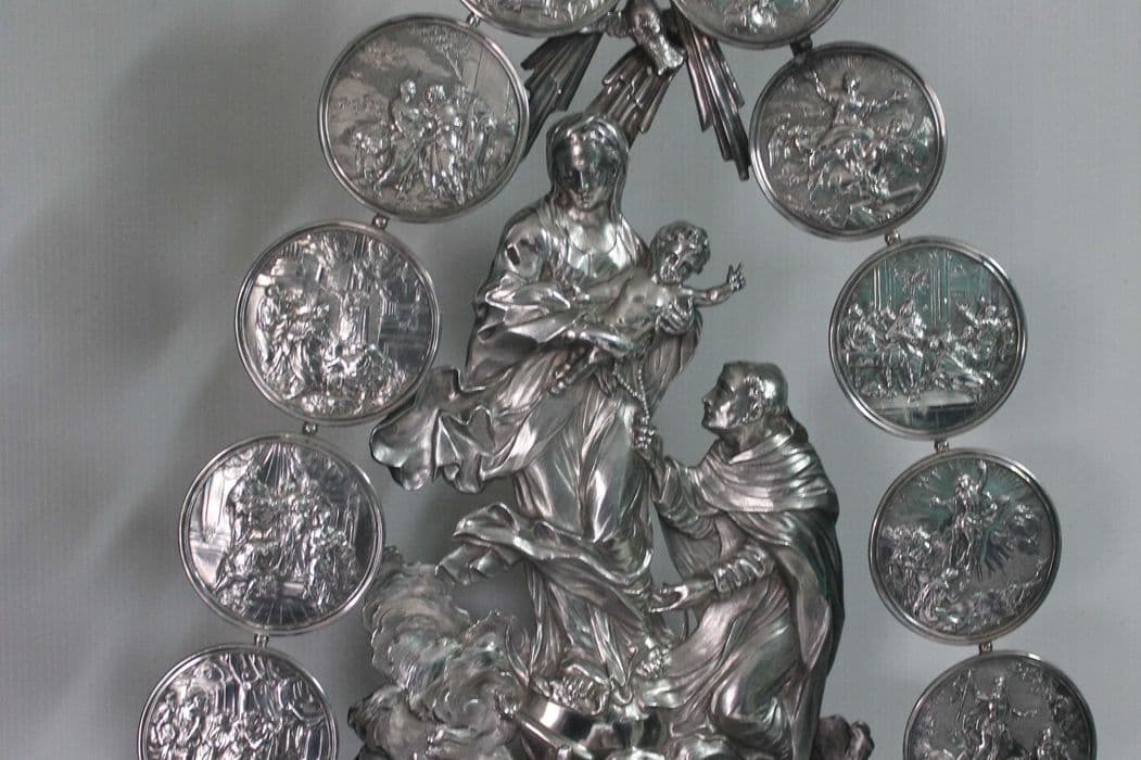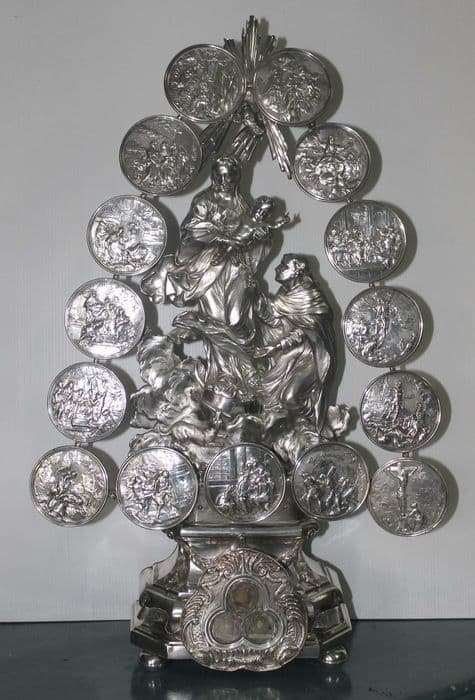 reliquaire, relief : la Remise du rosaire à Saint Dominique