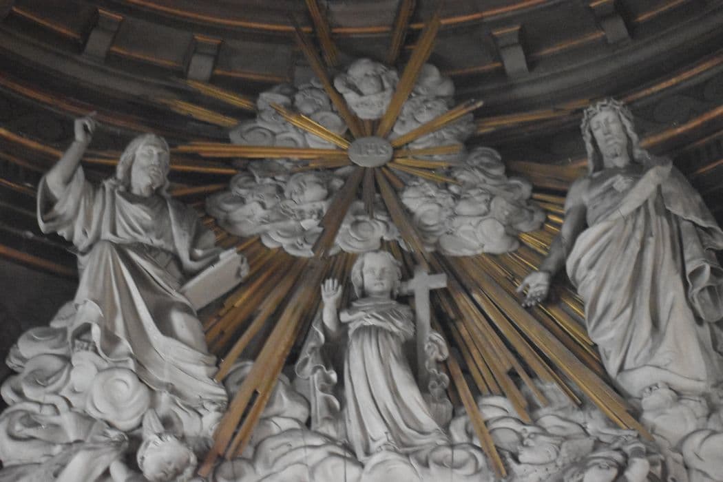 sculpture (gloire) du maître-autel : Le Miracle du Saint Sacrement