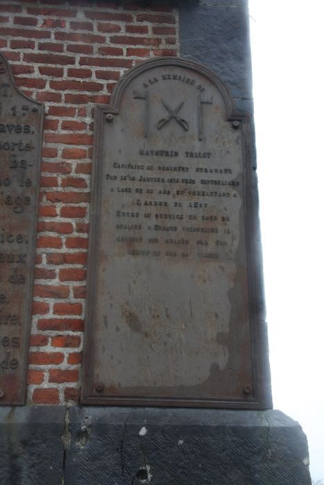 Epitaphe : A LA MEMOIRE DE – MATHURIN TRICOT – CAPITAINE AU REGIMENT ETRANGER – TUE LE 19 JANVIER 1871 PRES DE MONTBELIARD – A L AGE DE 33 ANS EN COMBATTANT A – L ARMEE DE L EST – ENTRE AU SERVICE EN 1853 EN – QUALITE D ENGAGE VOLONTAIRE IL – CONQUIT SES GRADES PAR SON – MERITE ET PAR SA VALEUR.