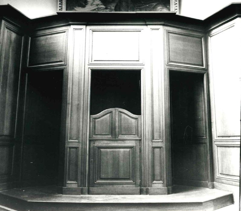 Un confessionnal identique fait pendant à celui-ci dans la chapelle Saint-Loup.