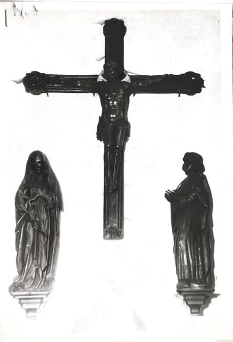 POP | Plateforme ouverte du patrimoinetrois statues de calvaire : Christ en croix avec le Tétramorphe, la Vierge et Saint Jean