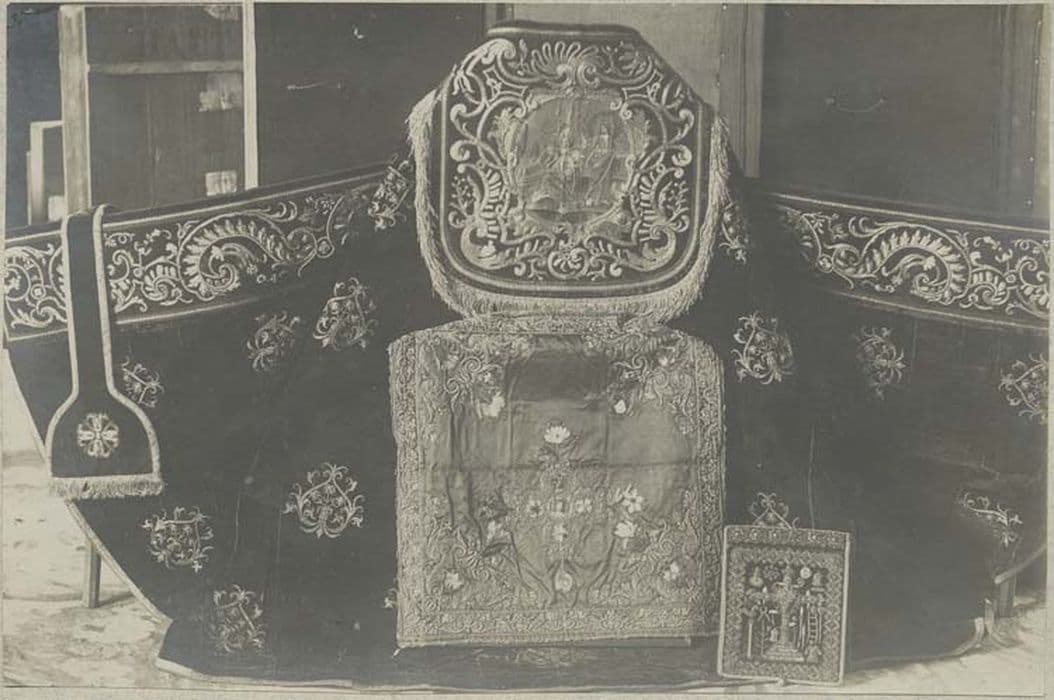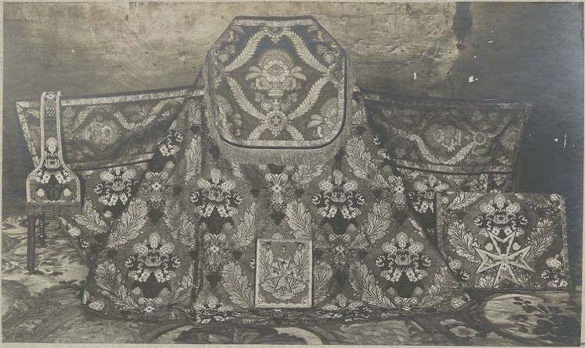 POP | Plateforme ouverte du patrimoine1 chasuble, 3 chapes et 2 dalmatiques (ornement rouge complet)