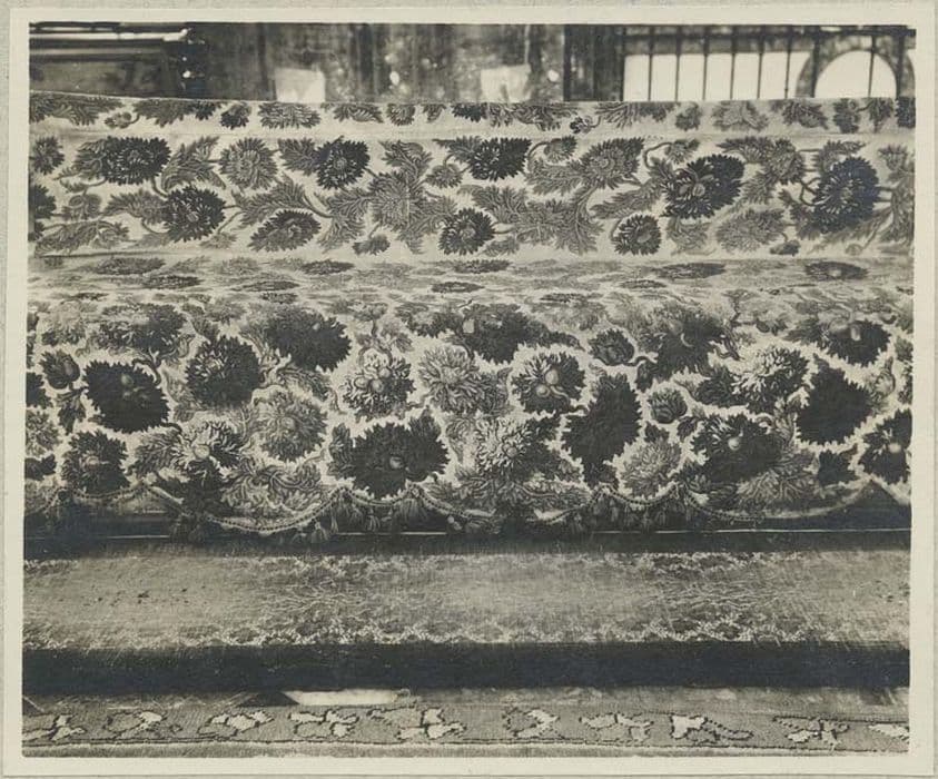 bois : taillé ; soie (garniture) : tapisserie au point